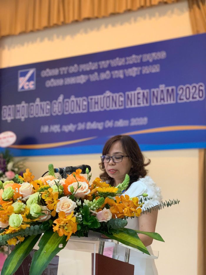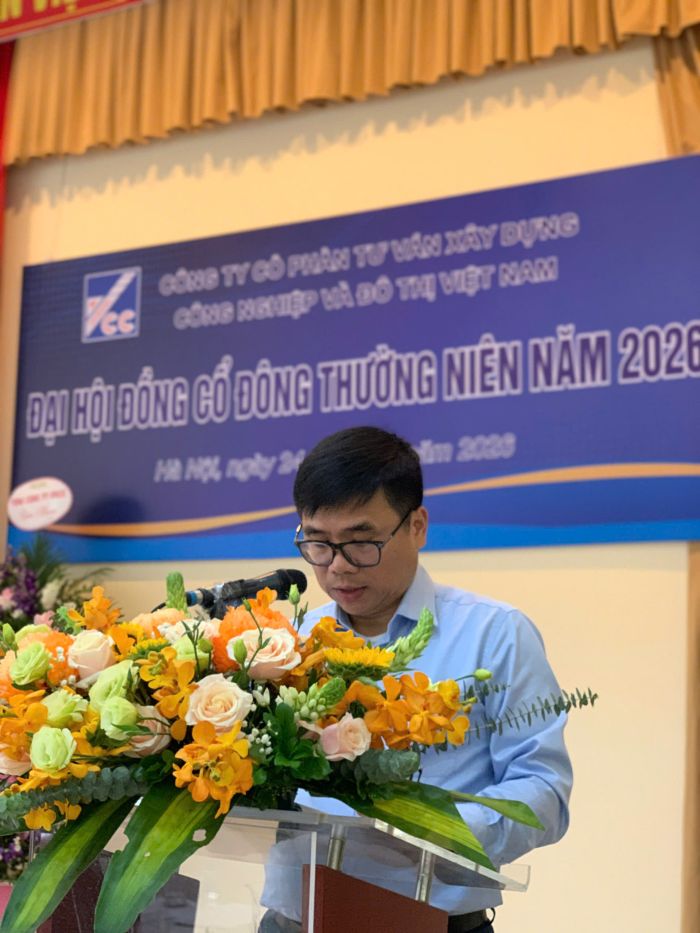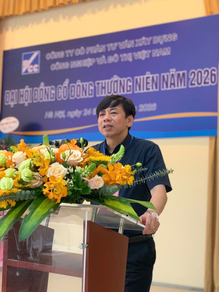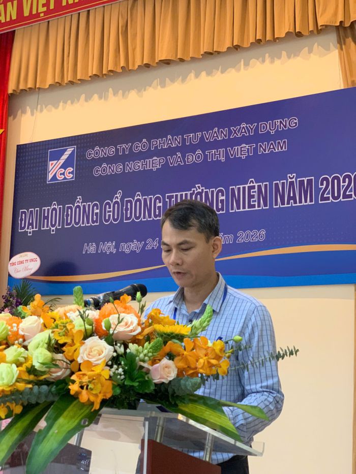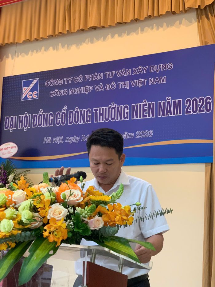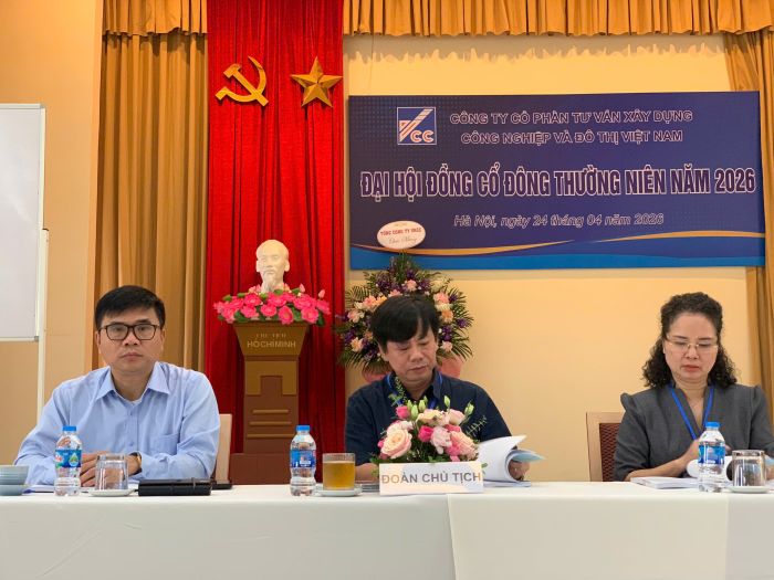 Ngày 24/04/2026, tại Trụ sở số 10 Hoa Lư, phường Hai Bà Trưng, thành phố Hà Nội, Công ty Cổ phần Tư vấn Xây dựng Công nghiệp và Đô thị Việt Nam (VCC) đã tổ chức thành công Đại hội đồng cổ đông thường niên năm 2026. Chủ trì Đại hội là ông Trần Nhật Minh - Chủ tịch Hội đồng quản trị Công ty.
