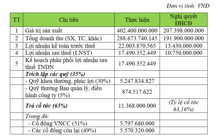 Tại Đại hội, ông Trần Nhật Minh - Chủ tịch Hội đồng quản trị đã thay mặt Hội đồng quản trị đọc Tờ trình về kết quả kinh doanh, phương án phân phối lợi nhuận sau thuế năm 2025 và kế hoạch kinh doanh, phương án phân phối lợi nhuận sau thuế năm 2026. Cụ thể, kết quả kinh doanh, phương án phân phối lợi nhuận sau thuế năm 2025 với các chỉ tiêu cụ thể như sau: