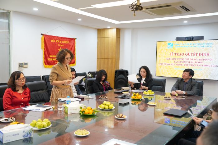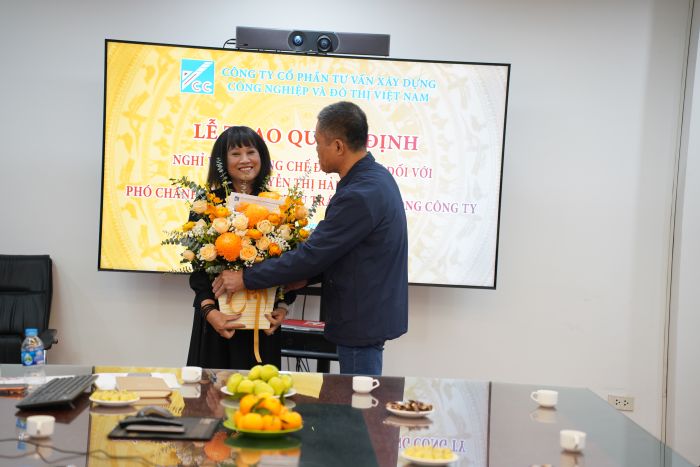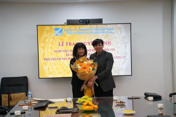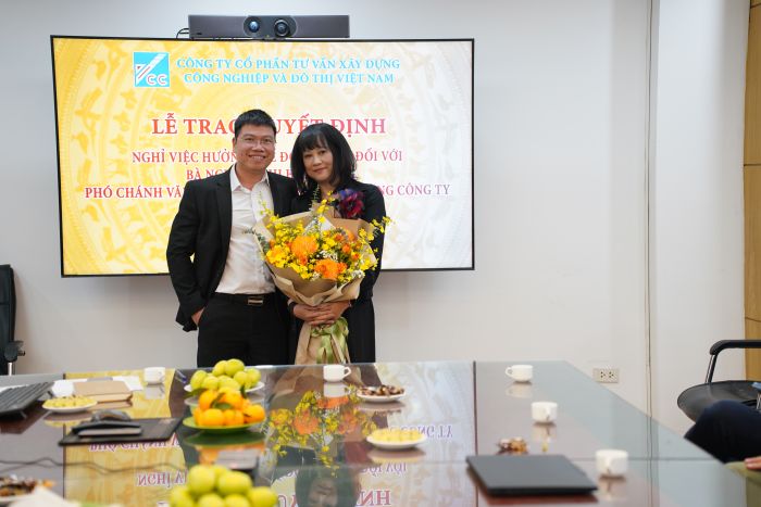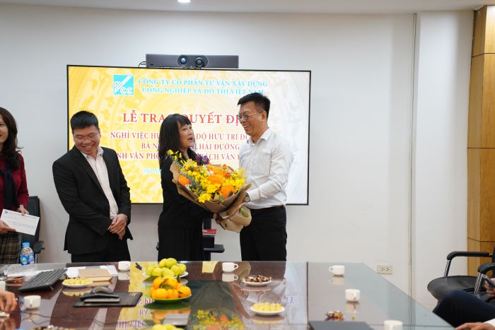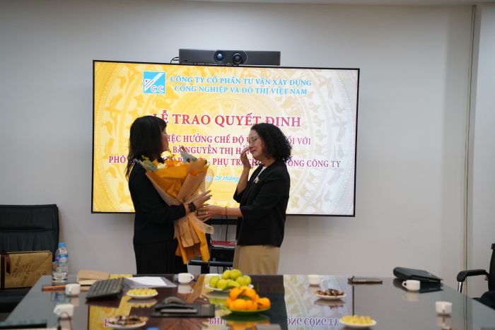 Ngày hôm nay, 28/11/2025, Công ty Cổ phần Tư vấn Xây dựng Công nghiệp và Đô thị Việt Nam (VCC) đã tổ chức Lễ trao quyết định nghỉ việc hưởng chế độ hưu trí cho bà Nguyễn Thị Hải Đường, Phó Chánh Văn phòng, Phụ trách Văn phòng Công ty, sau 37 năm công tác gắn bó và cống hiến tận tâm.